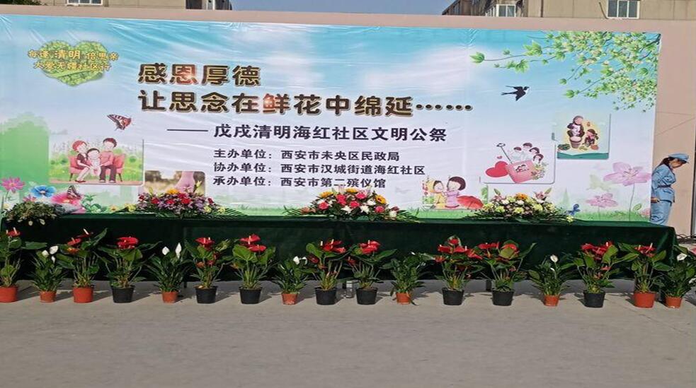 海紅物業公司與海紅社區攜手西安市第二殯儀館在海紅小區文體廣場開展以“感恩厚德、讓思念在鮮花中綿延”為主題的綠色公祭活動。未央區民政局、漢城街道辦、西安市第二殯儀館的相關領導,海紅物業公司、海紅社區職工群眾600余人參加了此次公祭活動。